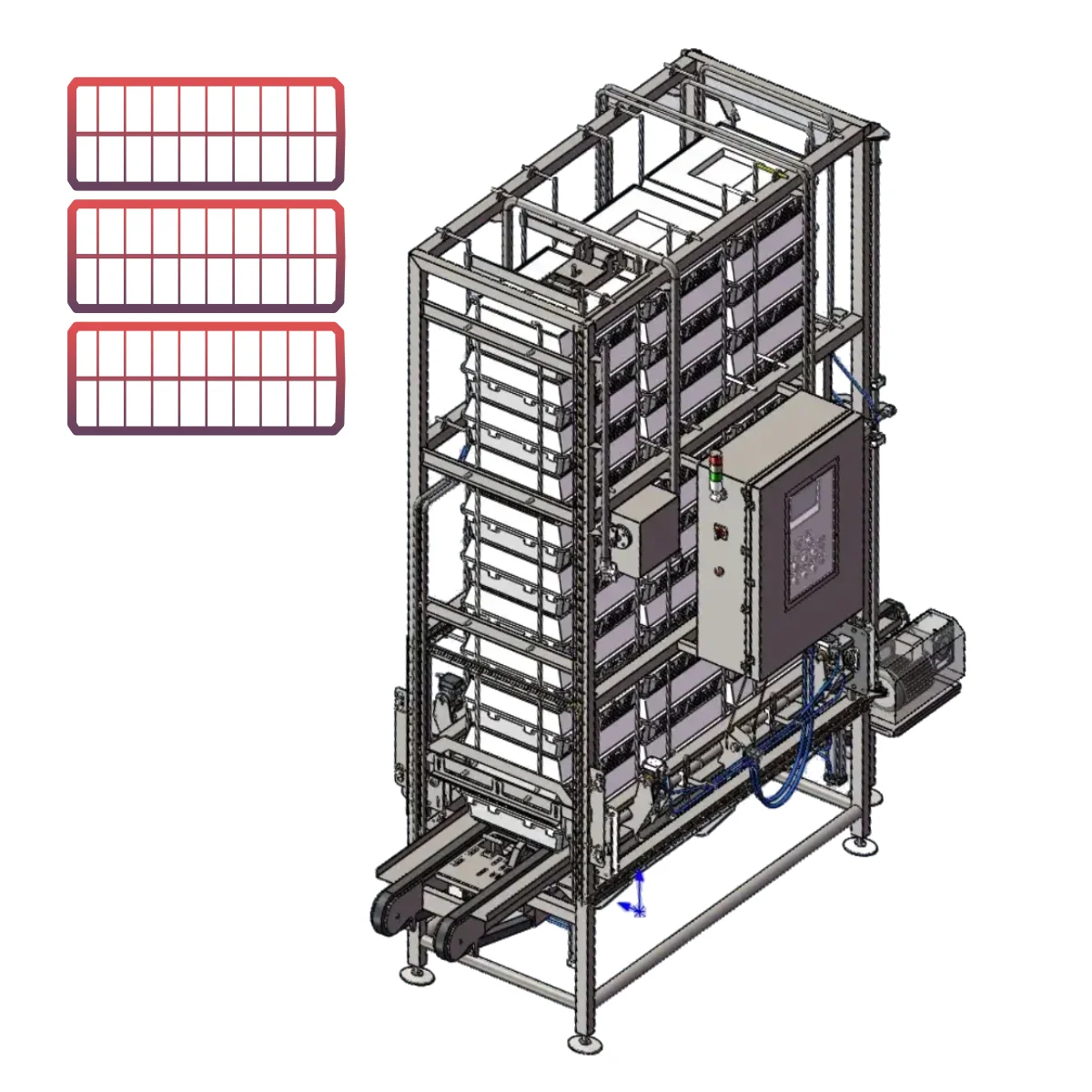 This stacker machine automates the process of stacking and de-stacking poultry crates, significantly reducing labor costs and minimising the risk of injury associated with manual handling. Various options to suit your needs, including direct-inclined conveying mechanism that is stable, fast, and accurate in the operation of unloading poultry transport cages. It saves labor and improves work efficiency, making it ideal for poultry slaughtering businesses.