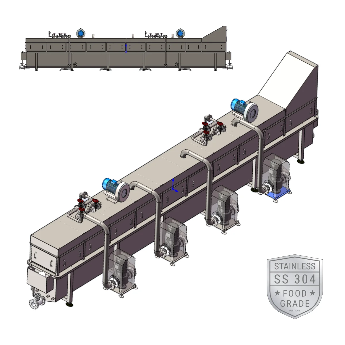 Skip to contentScalding is an important process for birds defeathering effect, and the quality of final products is directly influenced by the effect of scalding. This scalding machine uses steam heating by heat exchange. A controlled injection of air agitates the water to create a consistent and powerful, turbulent, tumbling state and make the water temperature uniform. When the birds pass between the agitated bubbles and the water, the feathers and the body is sufficiently immersed for optimum scalding effect. The heat exchange automatic temperature control system avoids over-scalding the body. Water is replenished automatically.