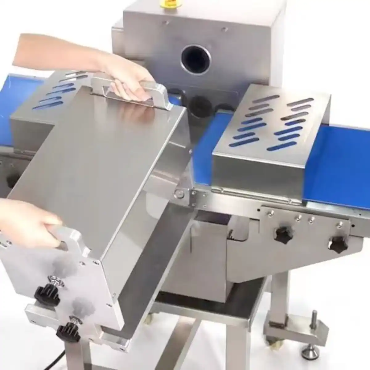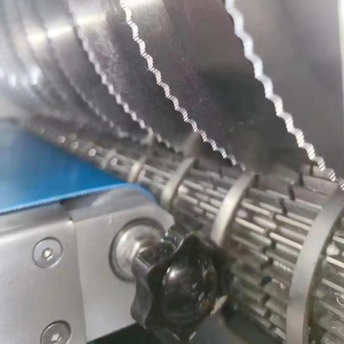 1. Grooved conveyor belt grips the meat to ensure precise slicing of even the thinnest meat portions.