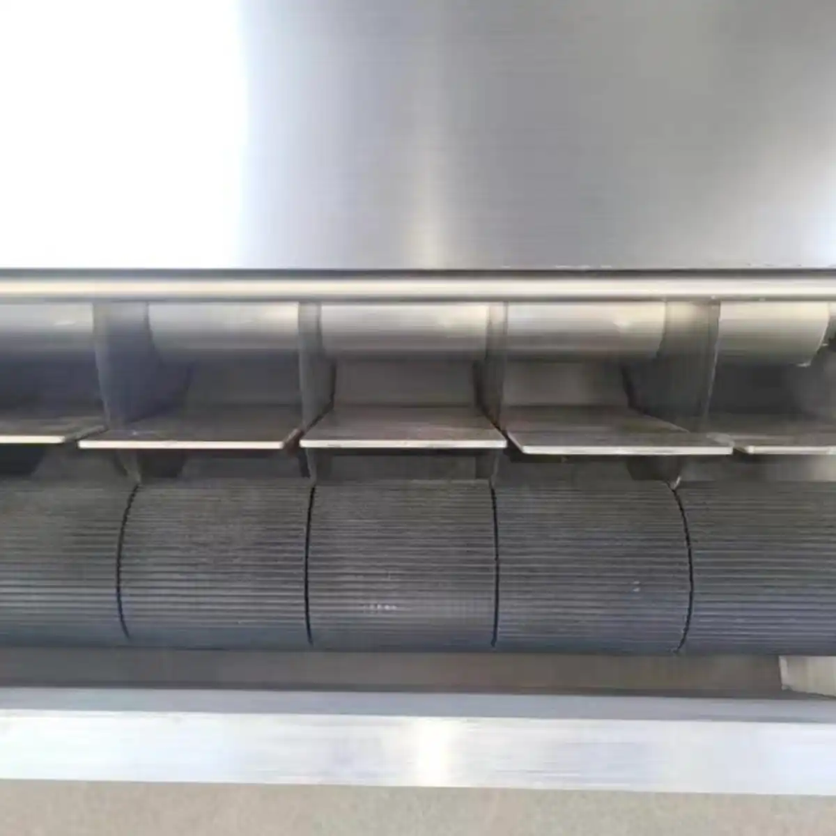 Horizontal belt-driven meat slicer machine with multiple sets of disc knives to cut poultry into strips or blocks. Suitable for cutting and processing fresh or slightly frozen raw meat / poultry.  The thickness of the strips can be adjusted to your required size.
